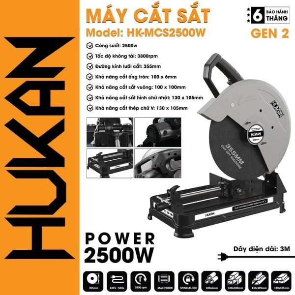 Máy cắt sắt HK-MCS2500W là máy cắt sắt, cắt thép dùng để cắt sắt thép hình, thép ống với nhiều kích cỡ khác nhau theo nhu cầu sử dụng. Công suất máy 2500 W thuận lợi cho cắt những loại sắt mỏng, hoặc cắt với số lượng ít hay sử dụng trong gia đình.