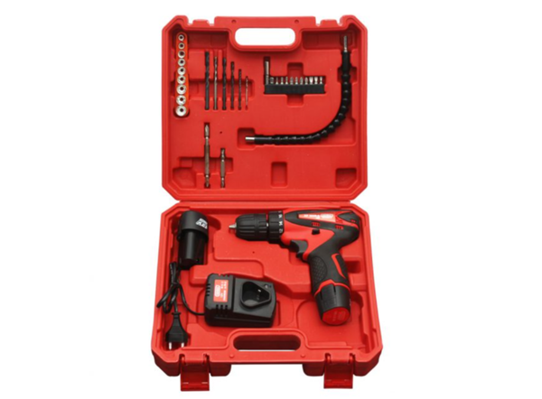 Máy khoan có thiết kế gọn nhẹ, thời gian sạc pin 120 phút, sử dụng liên tục từ 30 - 45 phút, máy có 2 cục pin và 1 cục sạc.