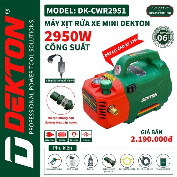 Máy rửa xe Dekton DK CWR 2951 có thông số: